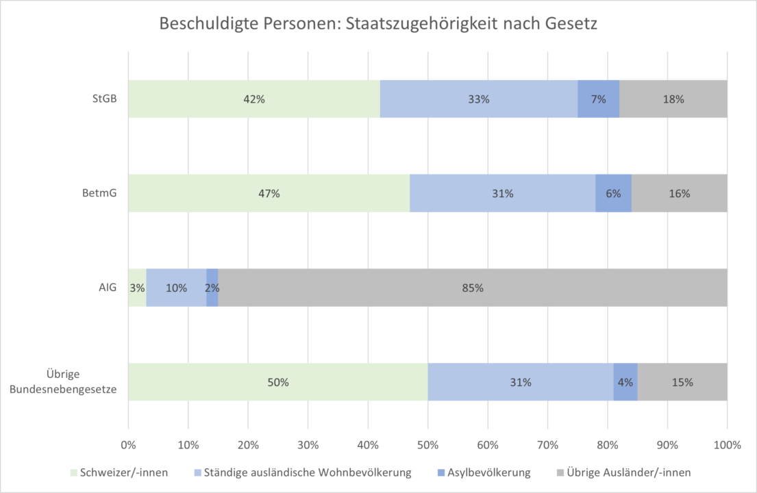 Die Mehrheit der Kriminaldelikte wird von Ausländern begangen. Bild: eigene Darstellung, Quelle: Kanton Zürich