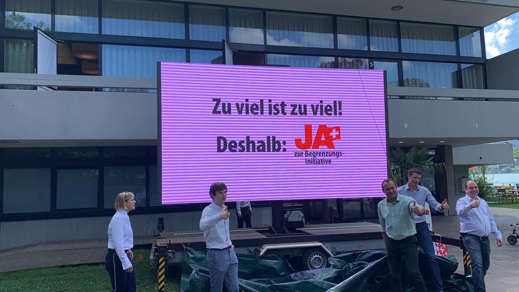 Vorerst steht nun der Kampf gegen das sogenannte Institutionelle Rahmenabkommen an. Wir werden allen Kräften entschieden entgegentreten, die das NEIN zur Begrenzungs-Initiative in ein JA zum Institutionellen Abkommen mit der EU umdeuten wollen. Wir werden diesen Unterjochungsvertrag und die weitere Anbindung an die EU entschieden bekämpfen.Mit der Einwanderungsuhr präsentierte die SVP eindrückliche Zahlen über die Folgen der masslosen Zuwanderung.