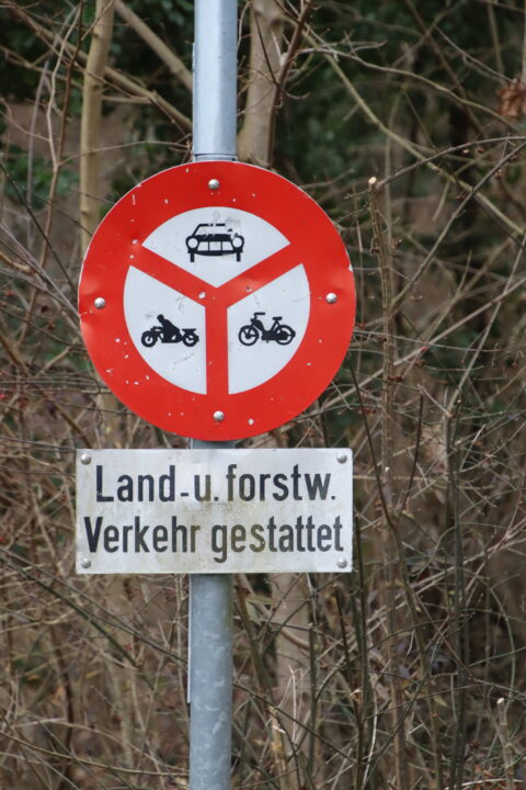 Im Wald gilt grundsätzlich ein Verbot für alle angetriebenen Fahrzeuge. Trotzdem dürfen bei solchen Vorschriftsschildern Biker mit konventionellem sowie E-Antrieb fahren. Bild: zVg