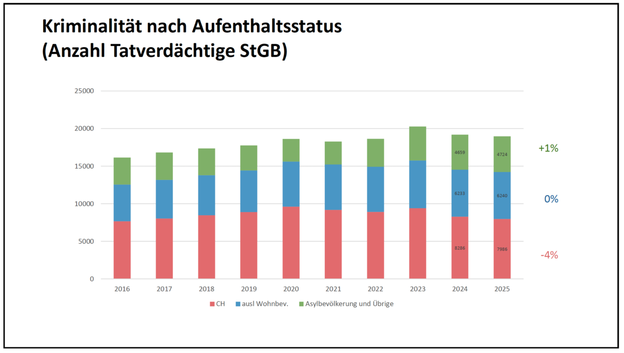 Bild: Aus der Präsentation von RR Mario Fehr zur Polizeilichen Kriminalstatistik 2025, anlässlich der Medienkonferenz vom 23. März 2026