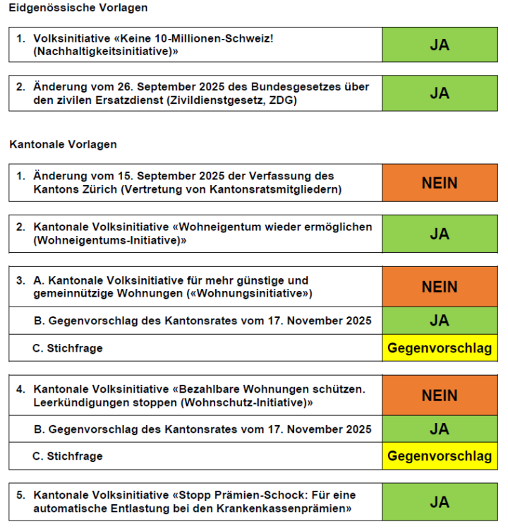 Die Parolen zu den fünf kantonalen Abstimmungsvorlagen wurden ebenfalls beschlossen: