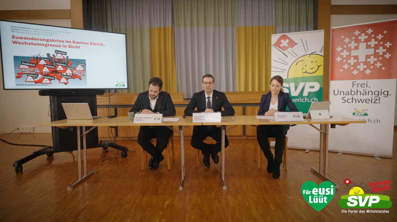 Hinzu kommt: Nur gut jeder Zweite der Zuwanderer kommt zur Erwerbstätigkeit in die Schweiz. Die Belastung für Sozialwerke, Schulen und Gemeinden nimmt entsprechend zu. Parteipräsident Domenik Ledergerber betont: «Die Zürcher haben ein Recht auf Sicherheit, Wohnraum und eine intakte Heimat. Diese Interessen müssen endlich wieder Priorität haben.»