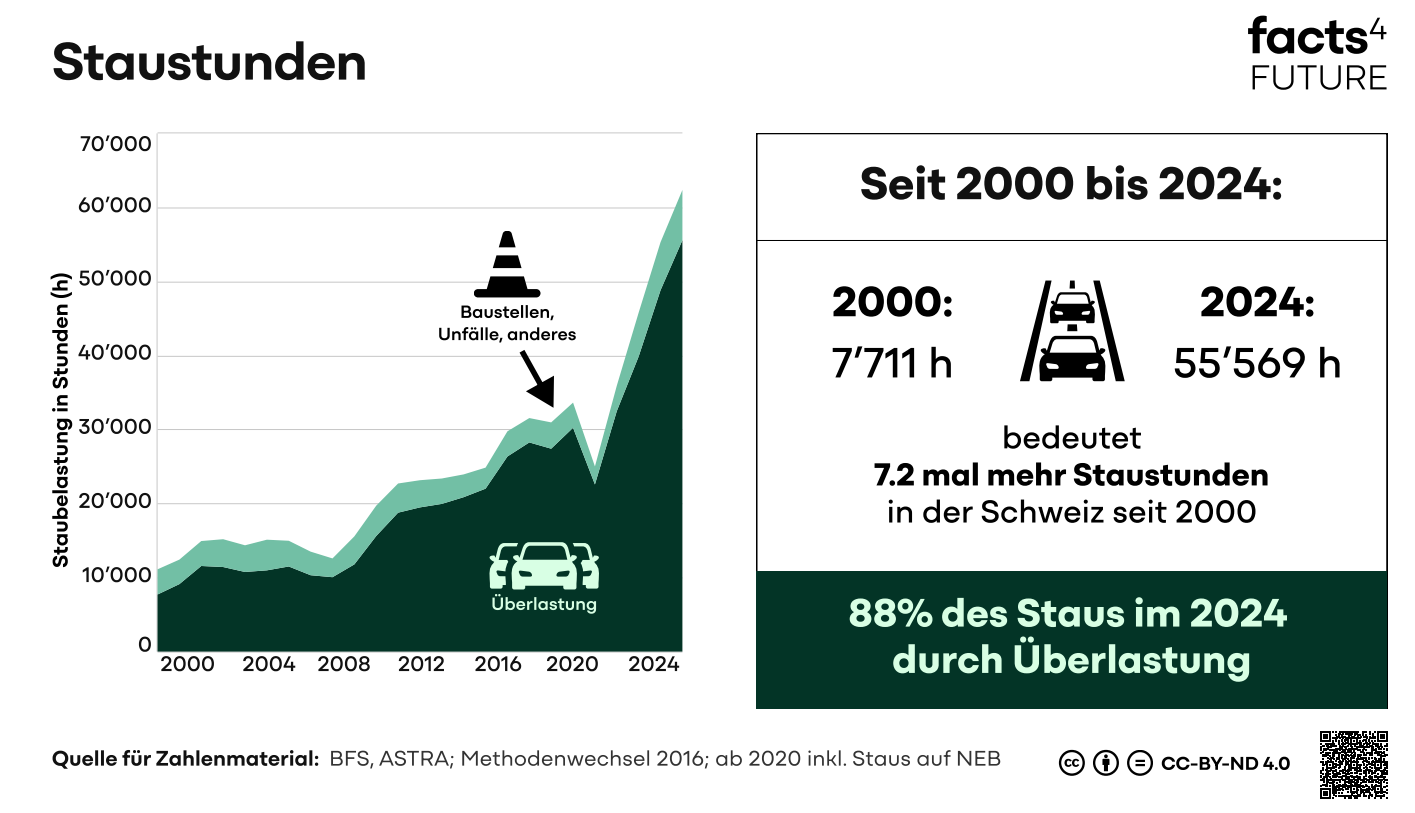 - 2024: 55'569 Staustunden auf Schweizer Strassen.